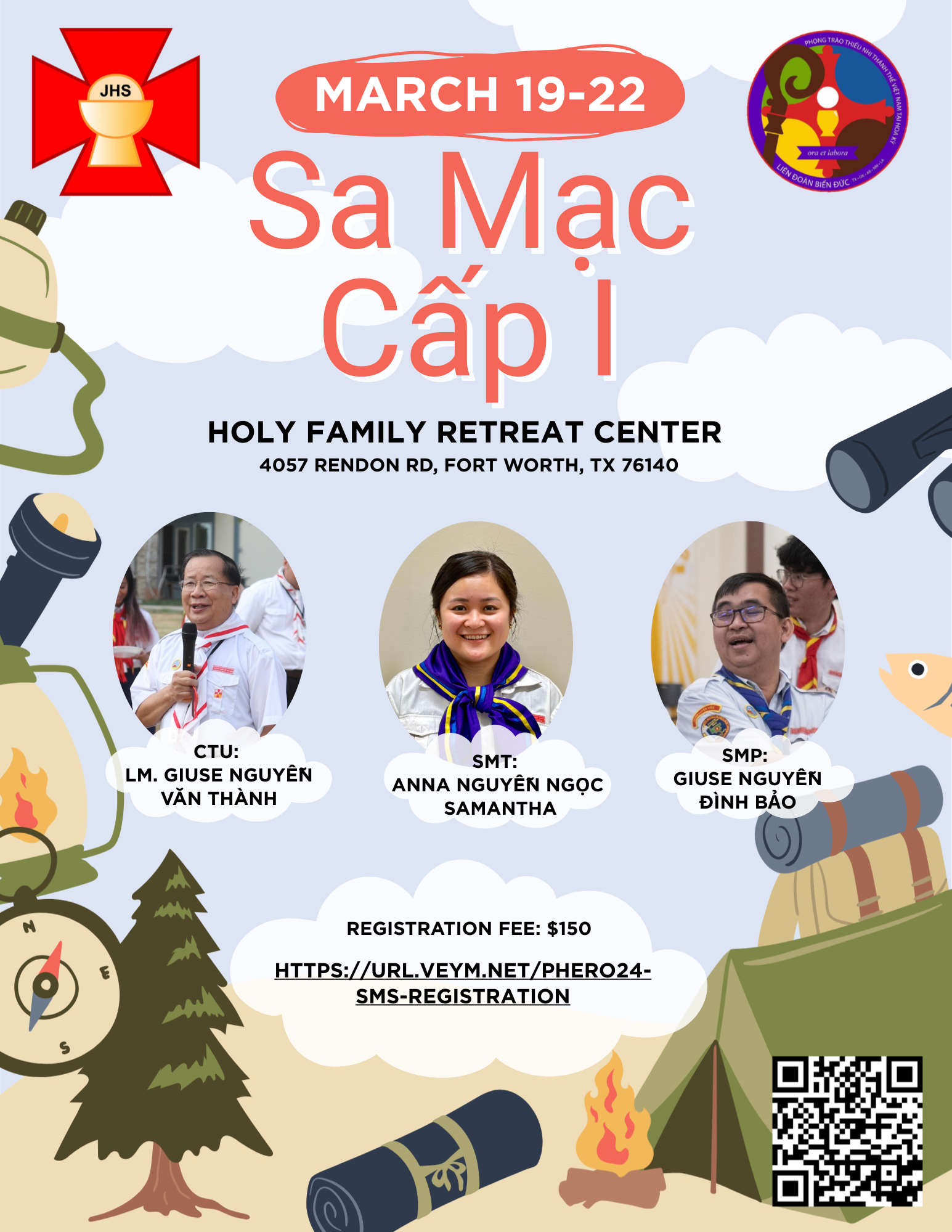 Lệ Phí:$150. Xin đóng đủ khi nộp đơn ghi danh tham dự sa mạc.